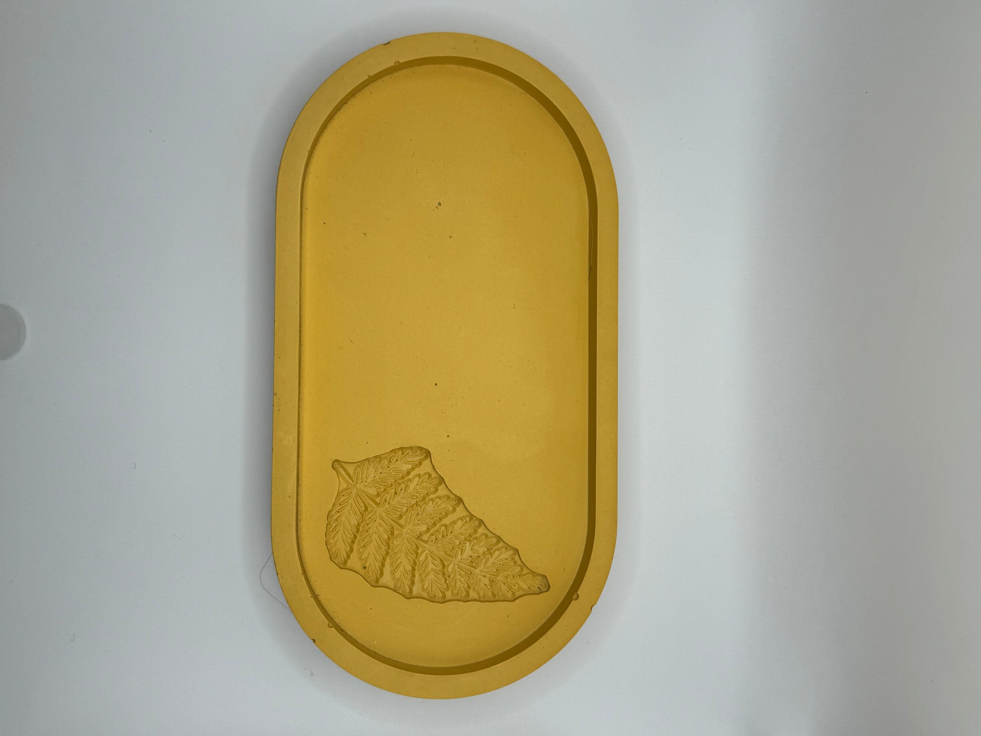 Elevate your home decor with our Oval Tray featuring a beautiful leaf print in mustard tones. Made with jesmonite, this tray adds a touch of warmth and charm to any space. Perfect for serving or as a decorative piece, it's a must-have for the fall season.
